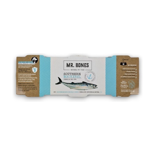 Mokré krmivo pro psy a kočky od Mr. Bones je doplňkové mokré krmivo vyrobené výhradně z jižní makrely a vody. Makrela je jemně vařená v přirozeném stavu, bez soli, bez přísad a konzervantů, přičemž si zachovává svou šťavnatou texturu, autentickou vůni a všechny esenciální živiny.