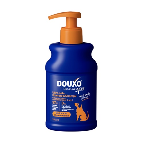 - 97 % přírodních složek a 0 % kontroverzních látek: Kondicionační šampon DOUXO® Skin & Coat SPA neobsahuje kontroverzní složky ani látky, poskytuje jemné a kůži šetrné čištění vašeho mazlíčka.