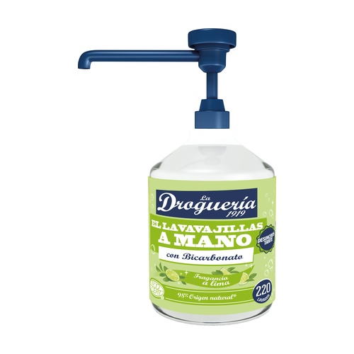 Mycí prostředek na nádobí Bicarbonato de La Drogueria 1919 je tekutý mycí prostředek na ruční mytí, účinný proti zaschlým nečistotám a zbytkům mastnoty.