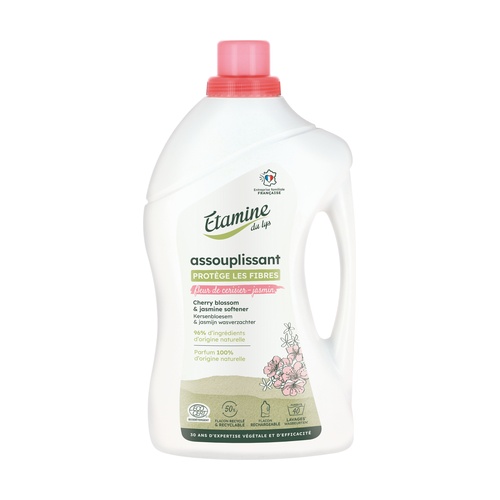 Aviváž Květy třešně & jasmín od Etamine du Lys změkčuje prádlo, přirozeně ho provoní a usnadňuje žehlení. Chrání vlákna, obnovuje nadýchanost a pružnost textilu a zároveň zabraňuje vzniku statické elektřiny.