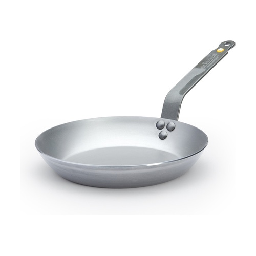 Pánev z oceli Mineral B 28 cm od De Buyer je kulatá pánev s profilem Lyonnaise, který umožňuje snadné sklouznutí potravin na talíř; ideální pro pečení a opékání.