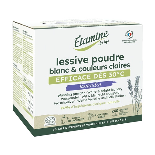 Je ideální pro údržbu bílého nebo světlého lnu díky svému působení proti šedivění a zabudovanému odstraňovači skvrn. Je jemně parfémovaný 100% čistým a přírodním esenciálním olejem z levandule, lze jej použít při ručním praní i v pračce při všech teplotách.