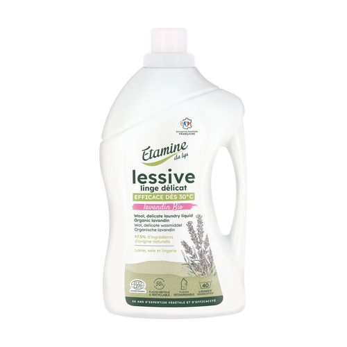 Tekutý prací prostředek na vlnu Etamine du Lys je speciálně přizpůsobený k praní všech jemných textilií: hedvábí, vlny, spodního prádla. Tento bio prací prostředek je zvláště vhodný pro praní černého a tmavého prádla. Tento ekologický tekutý prací prostředek, použitelný pro praní v pračce nebo ručně, zbavuje vlnu plstnatosti a chrání vlákna.