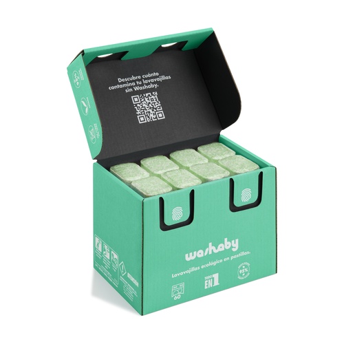 Ekologický mycí prostředek do myčky v tabletách Washaby je biologicky odbouratelný mycí prostředek do myčky v tabletové formě.