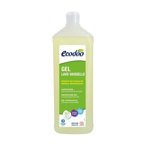 Gel na mytí nádobí Ecodoo myje, odmastí a dodává nádobí lesk, odstraňuje stopy zbytků potravin.