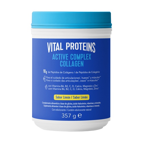 Vital Proteins Active Complex se skládá z peptidů kolagenu, vápníku, hořčíku, zinku, riboflavinu, vitamínu B6, C, D, kyseliny hyaluronové a glycinu. Peptidy kolagenu Vital Proteins se vyznačují vysokým obsahem klíčových aminokyselin: glycinu, prolinu a hydroxyprolinu. Ty představují přibližně 50 % celkového obsahu aminokyselin.