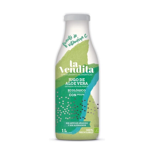 Bio šťáva z aloe vera s dužinou La Vendita je přírodní doplněk stravy vyrobený z organické aloe vera, známé svými mnoha zdravotními přínosy. Bohatá na vlákninu, vitamín C a acemanan, tato šťáva pomáhá zlepšit trávení, posílit imunitní systém a poskytuje vysoký antioxidační účinek.