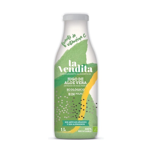Bio šťáva z aloe vera bez dužiny La Vendita je přírodní doplněk stravy vyrobený z organického aloe vera, známého svými mnoha zdravotními přínosy. Bohatý na vlákninu, vitamín C a acemanan, tento džus pomáhá zlepšovat trávení, posilovat imunitní systém a poskytuje vysokou antioxidační sílu.