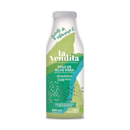 Šťáva z aloe vera s dužinou Eco od La Vendita je přírodní doplněk stravy vyrobený z organického aloe vera, známého svými mnoha zdravotními přínosy. Bohatá na vlákninu, vitamín C a acemanan, tato šťáva pomáhá zlepšovat trávení, posilovat imunitní systém a poskytuje vysoký antioxidační účinek.