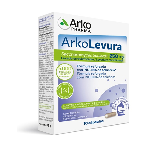 Kapsle Arkolevura jsou baleny v kontrolované atmosféře, chráněné superochranným blistrem tvořeným dvojitou vrstvou hliníku, 100 % neprůhledným a velmi odolným. Tento systém zajišťuje, že během celé životnosti produktu zůstává dávka kvasinek vyšší než 2,5 miliardy. Tímto způsobem každá kapsle při užití dodává více než 2,5 miliardy CFU oživených kvasinek.