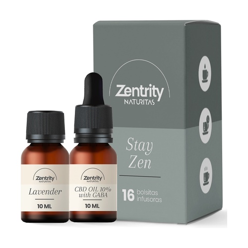 Relaxace balíček Zentrity by Naturitas je složen ze dvou našich nejlepších pomocníků pro odpočinek; Bio esenciální olej z levandule 10 ml, CBD olej s gaba 10 ml a Bio bylinné čaje Stay zen (citronová tráva, heřmánek, lípa, levandule a mučenka) v 16 nálevových sáčcích.