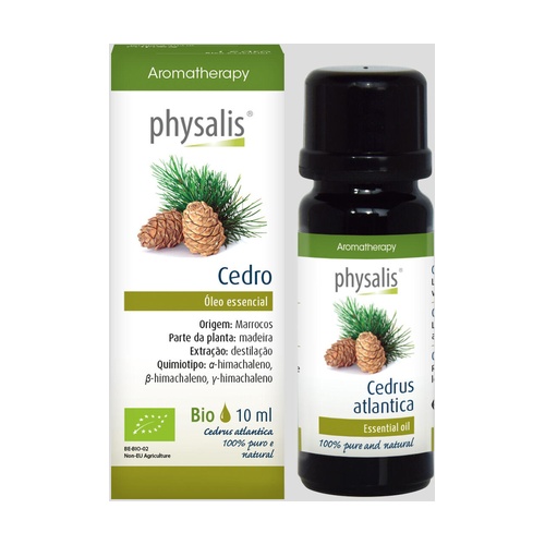 Esence Cedro Bio od Physalis tonizuje pokožku a podporuje dobré prokrvení. Masáž olejem na bázi cedru napomáhá odstranění toxinů a vyhlazuje pokožku. Kapka cedrového oleje přidaná do šamponu má blahodárný účinek na pokožku hlavy.