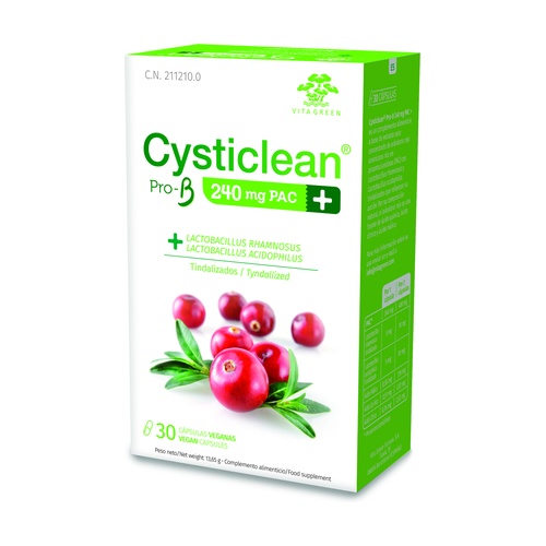 Cysticlean Pro-B od Cysticlean je doplněk stravy navržený pro vaše pohodlí v každém okamžiku. Brusinka velkoplodá, díky svému bohatství na proanthokyanidiny (PAC), nabízí pozoruhodné antibakteriální vlastnosti. Formula je obohacena o 5 mg laktobacilu rhamnosus a 5 mg laktobacilu acidophilus tindalizovaného, což jí dodává silný probiotický efekt, který posiluje obranu proti Escherichia coli. Kompletní spojenec pro vaše močové zdraví.