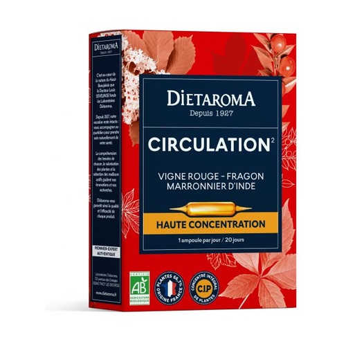 C.I.P. Circulation de Dietaroma je doplněk stravy s bylinami. Réva vinná, jírovec maďal a hadinec pomáhají k správné funkci krevního oběhu v nohách.