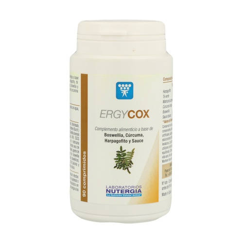 Ergycox od Nutergia je doplňkem stravy vyrobeným z extraktů vybraných rostlin: harpagofyt, zelený čaj, heřmánek pravý, kurkuma dlouhá, kadidlovník a bílý vrba. Kombinace rostlin má uklidňující blahodárné vlastnosti.