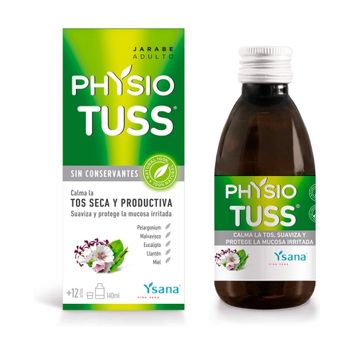 PhysioTuss® Adulto je 100% přírodní sirup bez konzervantů, který byl vyvinut k léčbě jakéhokoli kašle, suchého i vlhkého. Jeho exkluzivní formule založená na přírodních extraktech proskurníku, jitrocele a pelargonie, s medem a éterickými oleji z citronu a eukalyptu, doplňuje jeho složení a dodává svěží a příjemnou chuť.