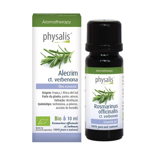 Rozmarýn ct.verbenon bio éterický olej od Physalis je stimulační olej, který je při difuzi prospěšný pro dýchací cesty. Má expektorační účinek, čímž podporuje vykašlávání hlenu při nachlazení. Při kožním použití se tato odrůda rozmarýnu používá pro své regenerační vlastnosti u poškozené nebo zralé pokožky.