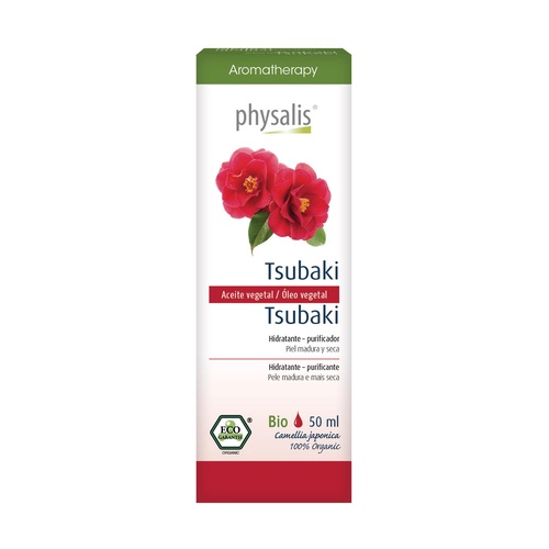 Tsubaki bio rostlinný olej Physalis je lehký olej, který se snadno vstřebává a je velmi bohatý na kyselinu olejovou. Vyrábí se ze semen japonské kamélie. Tento sladký olej je známý svou schopností pronikat do hlubších vrstev kůže.