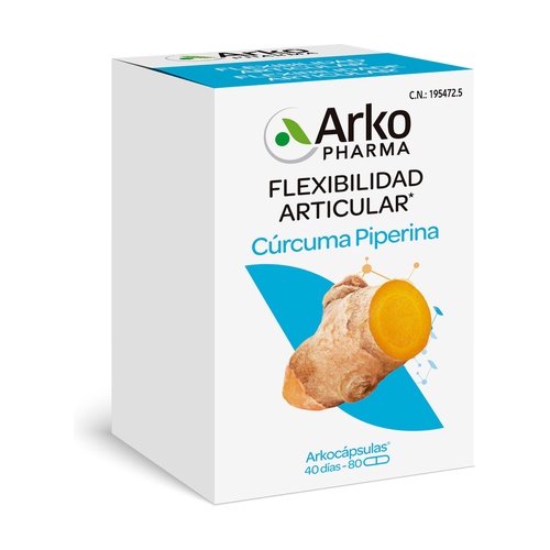 Arkocápsle kurkuma od Arkopharma jsou doplněk stravy založený na extraktech kurkumy a černého pepře. Kurkuma přispívá k pružnosti a pohodě kloubů. Piperin z černého pepře přispívá ke zvýšení vstřebávání kurkumy.