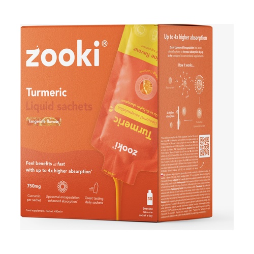 Každý sáček Turmeric Zooki obsahuje 750 mg aktivní kurkuminu zabaleného v „micelách“. Tato vodou rozpustná alternativa k typickým kurkumovým injekcím je pro tělo snáze vstřebatelná a přidali jsme přírodní mandarinkové oleje, aby poskytla lahodnou a osvěžující chuť.