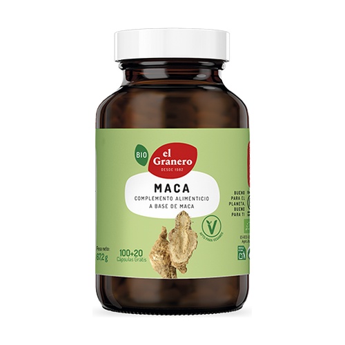 Bio Maca od El Granero Integral je doplněk stravy vyrobený z prášku andské macy (Peru a Bolívie) z ekologického zemědělství. Maca je kořen, kterému jsou připisovány posilující a energetizující vlastnosti.