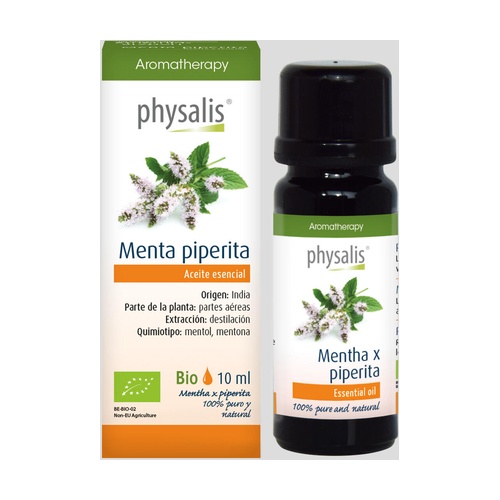 Bio esence máty peprné Physalis, hlavní složky oleje z máty peprné jsou mentol a menton.