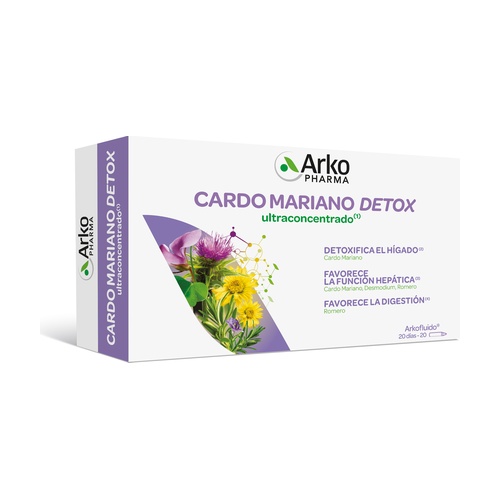 Arkofluido® Ostropestřec mariánský Detox od Arkopharma je doplněk stravy na bázi rostlinného extraktu, který pomáhá detoxikovat játra, podporuje jaterní funkce a podporuje trávení.