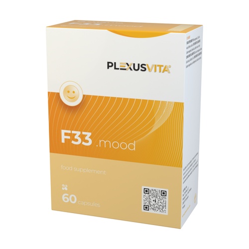 F33 Mood od Plexusvita je doplněk stravy na bázi třezalky, šafránu, bisglycinátu hořčíku a pikolinátu zinku. Synergie mezi standardizovanými extrakty třezalky (Hypericum perforatum) a šafránu, kombinovaná s hořčíkem a zinkem, vytváří inovativní formulaci, která pozitivně pomáhá při depresích.