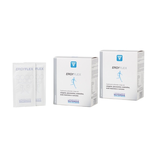 Ergyflex je doplněk stravy pro podporu zdravé a pružné pojivové tkáně, který dodává kolagen, glukosamin, kyselinu hyaluronovou a kurkumin.
