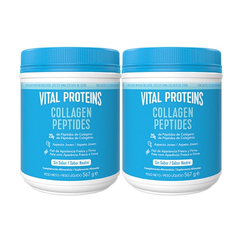 Balíček kolagenových peptidů od Vital Proteins. Doplněk stravy vyrobený z kolagenových peptidů, které se vyznačují vysokým obsahem klíčových aminokyselin: glycinu, prolinu a hydroxyprolinu. Ty představují přibližně 50 % celkového obsahu aminokyselin.