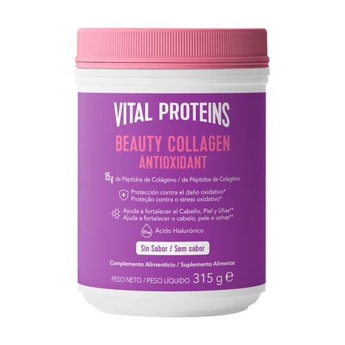 Vital Proteins Beauty Collagen Antioxidant se skládá z peptidů kolagenu, kyseliny hyaluronové, zinku, mědi a vlákniny. Peptidy kolagenu jsou charakterizovány vysokým obsahem klíčových aminokyselin: glycinu, prolinu a hydroxyprolinu. Ty představují přibližně 50 % celkového obsahu aminokyselin. Vital Proteins obsahuje specifickou kombinaci aminokyselin ve formě peptidů kolagenu.