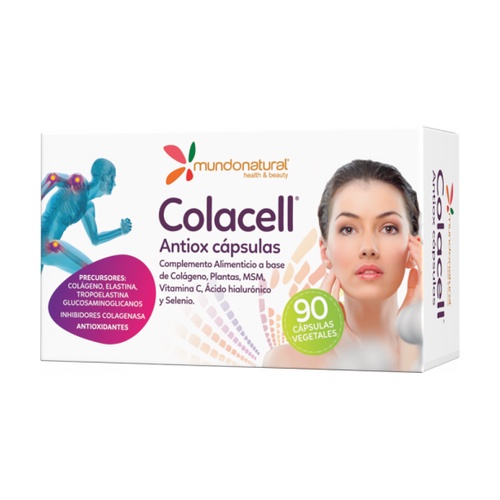 Colacell de Mundonatural je doplněk stravy na bázi čistého hydrolyzovaného kolagenu, extraktu z granátového jablka, Polygonu, a extraktu z hroznů, MSM, bambusu (zdroj organického křemíku), sodného hyaluronátu a vitamínu C.