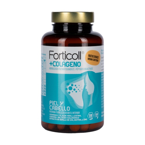 Forticoll Bioaktivní kolagen pro pokožku a vlasy je doplněk stravy ve formě tablet vyrobený na bázi bioaktivních kolagenových peptidů, minerálů, vitamínů, ubichinonu, kyseliny hyaluronové, aminokyselin a rostlinných extraktů.