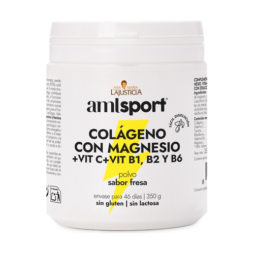 Kollagen s hořčíkem a vitamínem C + B1 B2 B6 Amlsport od Ana Maria Lajusticia je doplněk stravy podporující regeneraci tkání na bázi hydrolyzovaného kolagenu typu I a II.