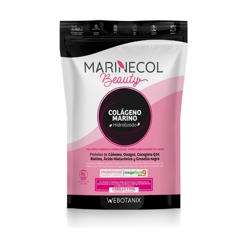 Marinecol Beauty je doplněk stravy založený na proteinu mořského kolagenu, rostlinných extraktech, kyselině hyaluronové, koenzymu Q10, vitamínu C, biotinu a probiotikách, který využívá výhody kolagenu pro pokožku, nehty a vlasy.