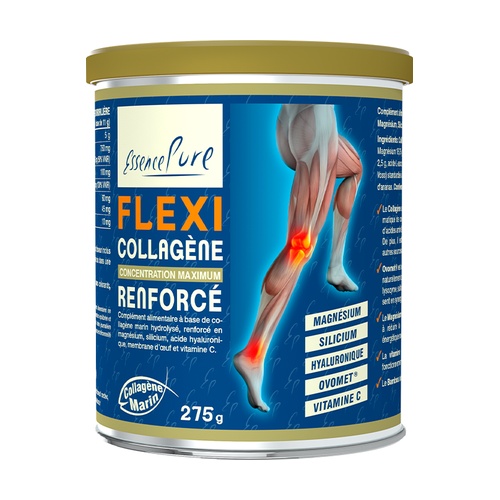 Doplněk stravy na bázi mořského hydrolyzovaného kolagenu, posílený hořčíkem, křemíkem, kyselinou hyaluronovou, vaječnou membránou a vitamínem c.Vlastnosti a přínosy Flexi zesílený kolagen