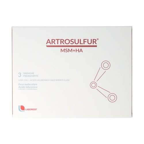 Artrosulfur MSM + Ha 3 předplněné stříkačky od Laborest je zdravotnický prostředek na bázi kyseliny hyaluronové, který pomáhá kloubům po nadměrném zatížení.