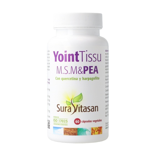 YointTissu M.S.M&PEA od Sura Vitasan je doplněk stravy na bázi metylsulfonylmetanu (MSM), glukosamin sulfátu, palmitoylethanolamidu (PEA), kvercetinu a standardizovaného extraktu z harpagofytu s 10% harpagosidů. Tato kombinace působí společně, přičemž MSM je sloučenina velmi bohatá na síru, snadno vstřebatelná a přirozeně se vyskytující minerál ve vazivové tkáni.