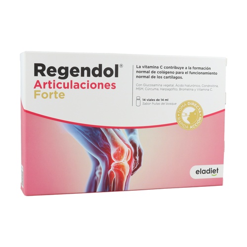 RegenDol Forte od Eladiet je doplněk stravy, který byl vyroben na bázi rostlinné glukosaminu, chondroitinu, MSM, kyseliny hyaluronové, kurkumy, harpagofytu a bromelainu s cílem zmírnit svalovou a kloubní bolest.