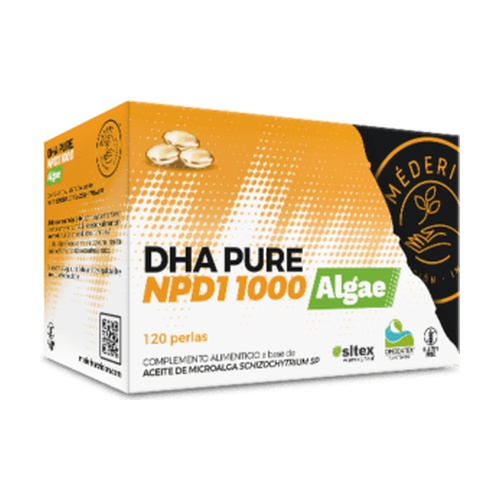DHA Pure NPD1 1000 Algae od Méderi je doplněk stravy na bázi oleje z mikrořasy Schizochytrium sp.