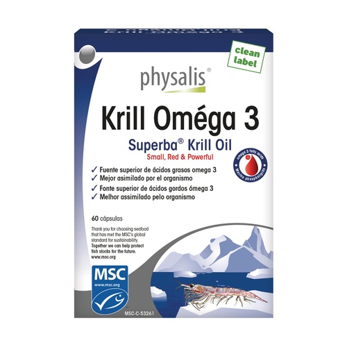 Krill Omega 3 od Physalis je doplněk stravy. Krill, malé krevety z chladných vod, je druh mořského zooplanktonu. Olej z krillu Physalis se získává z Euphausia superba. Olej z krillu je velmi bohatý na omega-3 mastné kyseliny EPA a DHA.