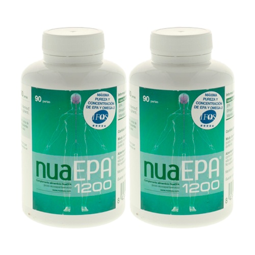 Balíček 2x Nua EPA je doplněk stravy založený na kyselině eikosapentaenové (EPA) ve formě triglyceridů, který poskytuje minimálně 1200 mg čistého EPA na perlu.