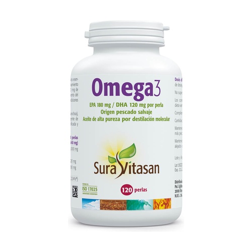 Omega-3 od Sura Vitasan je doplněk stravy vyrobený na bázi esenciálních omega-3 mastných kyselin, které poskytují 180 mg EPA a 120 mg DHA na perlu. Cílem je udržet normální fungování mozku, hlavního orgánu oběhové soustavy a zraku.