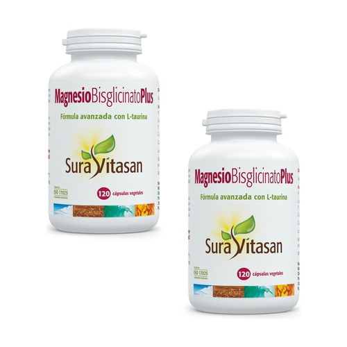 Magnesium Bisglycinát Plus od Sura Vitasan je potravinový doplněk vyrobený na bázi bisglycinátu hořčíku, nejlépe vstřebatelné formy hořčíku, a aminokyseliny L-taurinu pro usnadnění jeho vstřebávání.