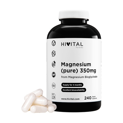 Hořčík (čistý) 350mg od Hivital je doplněk stravy založený na čistém elementárním hořčíku získaném z jeho formy bisglycinátu hořčíku, která má nejlepší biologickou dostupnost. Bisglycinát hořčíku může pomoci zlepšit svalovou funkci a nervový systém, snížit únavu a vyčerpání a aktivovat metabolismus.