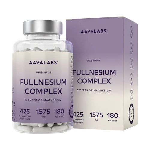 Hořčíkový komplex fullnesium od AAVALABS je doplněk stravy, který vám poskytuje 212 mg elementárního hořčíku na denní dávku (1 kapsle), s pěti vysoce biologicky dostupnými formami: bisglycinát, citrát, malát, taurát a oxid. Přispívá k normální funkci svalů, energetickému metabolismu a ke snížení únavy a vyčerpání.