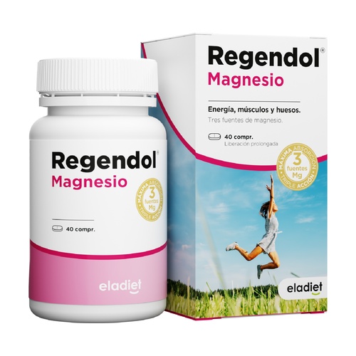 Regendol Magnesio od Eladiet je doplněk stravy založený na třech zdrojích hořčíku (bisglycinát, citrát a oxid hořečnatý), vysoce rozpustných a biologicky dostupných.