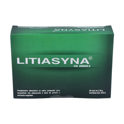 Litiasyna patří do skupiny doplňků stravy a je složena především z citrátu draselného a rostlinných extraktů. Draslík přispívá k udržení normálního krevního tlaku, normální funkci svalů a normální funkci nervového systému.