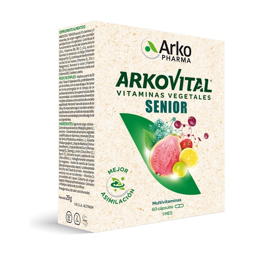 Arkovital Senior kombinuje 10 vitamínů a 5 minerálů rostlinného původu pro lepší vstřebávání organismem. Obsahuje lutein.