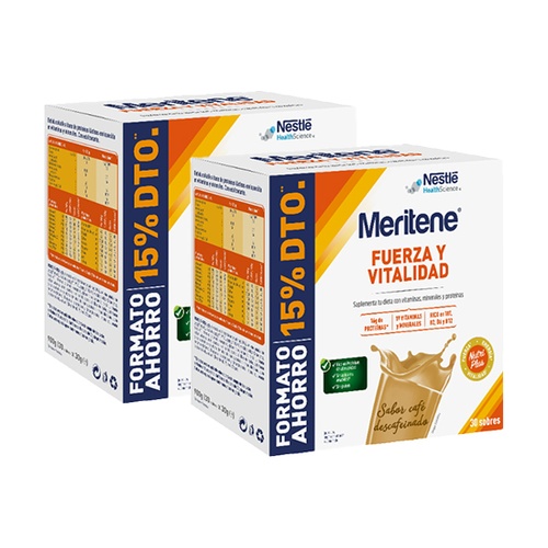 Balíček Meritene Batido Café od Meritene je nutriční řešení v práškové formě k rozpuštění a získání lahodného koktejlu. Jeho formule NutriPlus obsahuje vysoce kvalitní bílkoviny a 19 vitamínů a minerálů